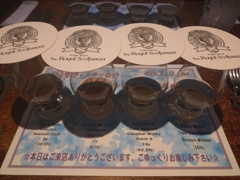 4種類の中では、お1人の方はカナディアンを好まれ、もうお1人方はアイリッシュがお好みだと仰いました。私は、アロマで比べるとDEANSTONかなと思いましたが、最終的には様々な表情を見せるアイリッシュも好みだと思いました。