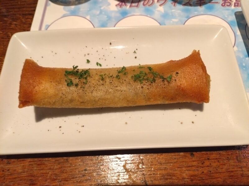 4品目は小貫さんから「美味しいですよ。」と出して頂いた春巻きの中身は、ハギスとマッシュポテト!温かい内にと思い、すぐ頂いたのですが、仰る通りとても相性が良く美味しい。