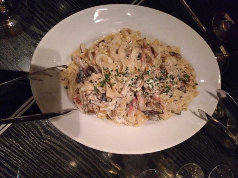 3品目は、フェットチーネ、タルトゥーフォ。きのこ、トリュフが丁度良い絡め具合でした。生パスタは中々頂く機会がないので、嬉しいとの事。こちらはクラガンモアやオールドブレンデッドは合うのでは、となりました。