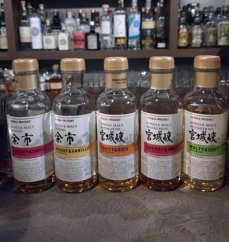 私は、宮城峡、竹鶴、余市の順番で頂き、蒸溜所限定ボトルからは余市WOODY&VANILLICを選びました。